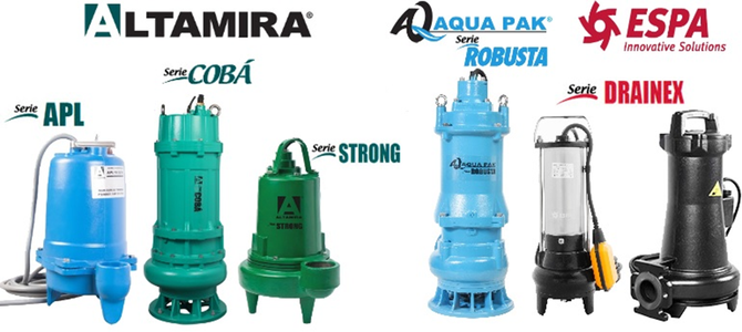 Bombas sumergibles para evacuación de aguas fecales o residuales y lodos(aguas negras), ideales para el desague de fosas sépticas, cárcamos con aguas de filtraciónn y pluviales, y todo tipo de depósito que contenga agua con carga de sólidos.