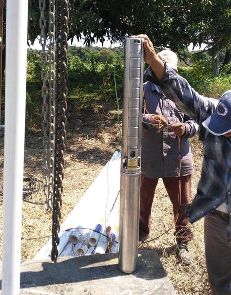 Equipamiento de pozo profundo con bomba sumergible y tubos de columna con kit de adaptadores en acero inoxidable para seguridad del equipo de bombeo.